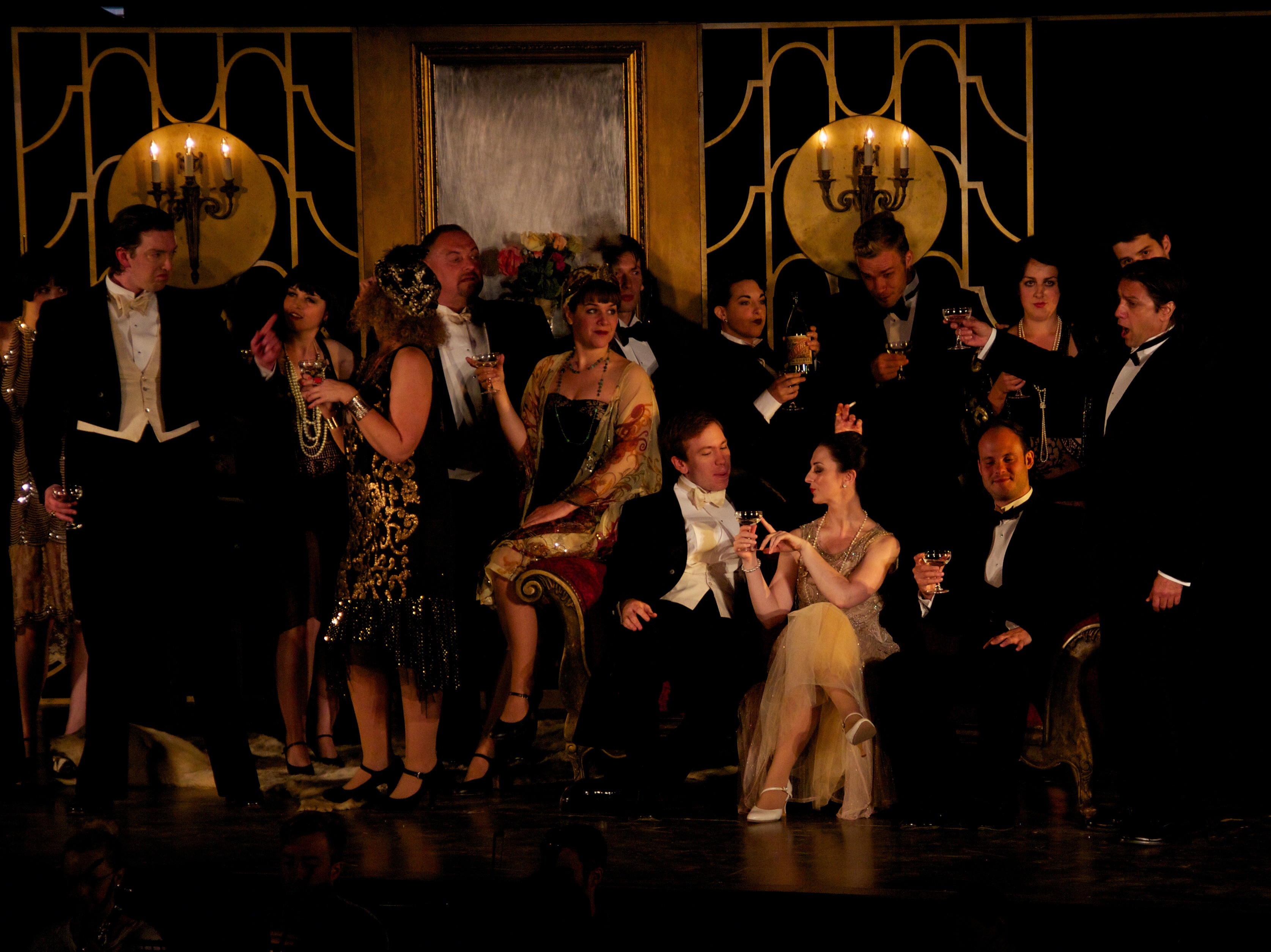 Designed by Deirdre Clancy and Sam Steer and directed by Ptolemy Christie, Winslow Hall’s jazz age La Traviata has a fancy-dress party atmosphere in the Act I brindisi and the Act II gypsy and matador choruses. Healthy-looking twentysomethings scamper about in dinner suits and flapper dresses, strings of pearls and Louise Brooks wigs, some of them in drag, none of them convincing demimondaines.